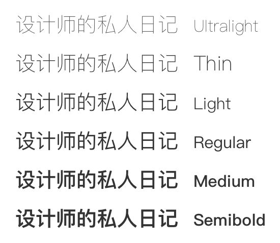 所谓的“重量”是指文字的线条粗细。大部分的标准字体,都会准备好几种的重量形态。