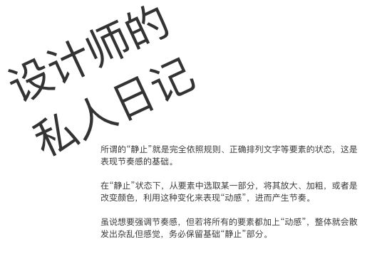 所谓的“静止”就是完全依照规则、正确排列文字等要素的状态,这是表现节奏感的基础。