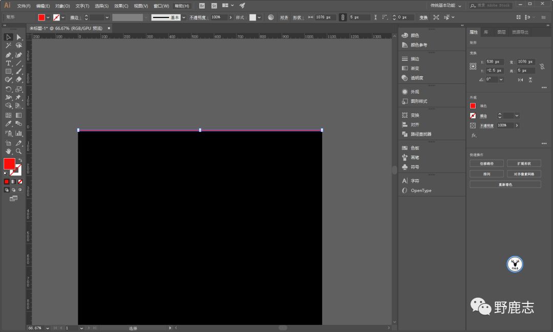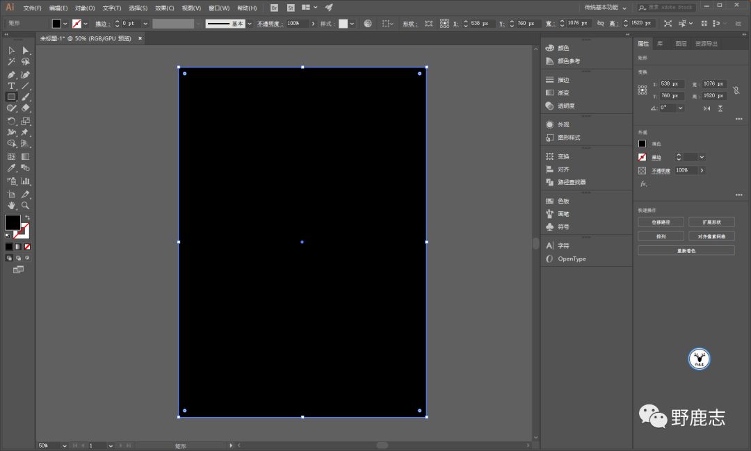 打开AI,新建画板,为了方便观察,先画一个黑色的矩形锁定充当背景: