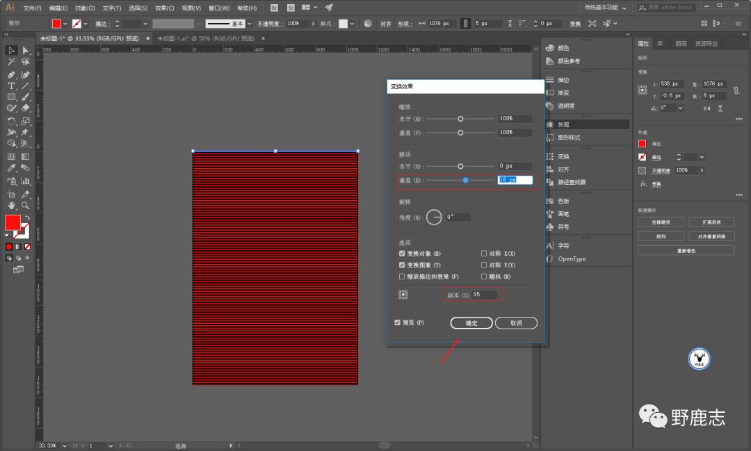 然后更改垂直方向的距离以及副本的数量做出多个矩形来,当然你用混合也可以,方法不是唯一哈: