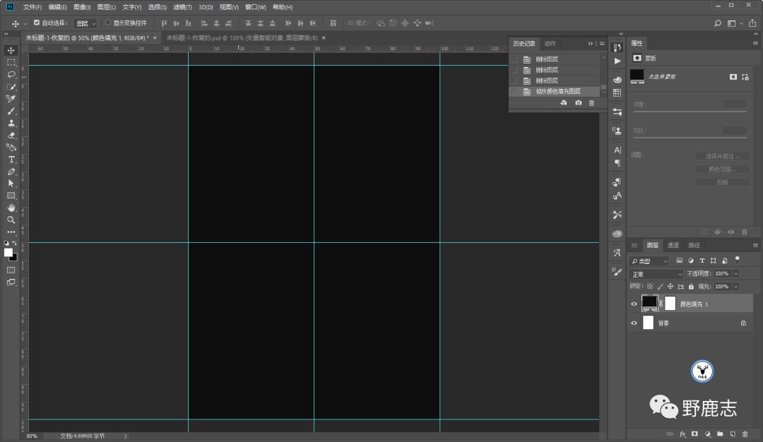 至此Ai里的操作就完成了,下面要到PS里操作了。打开PS,新建画布和填充色: