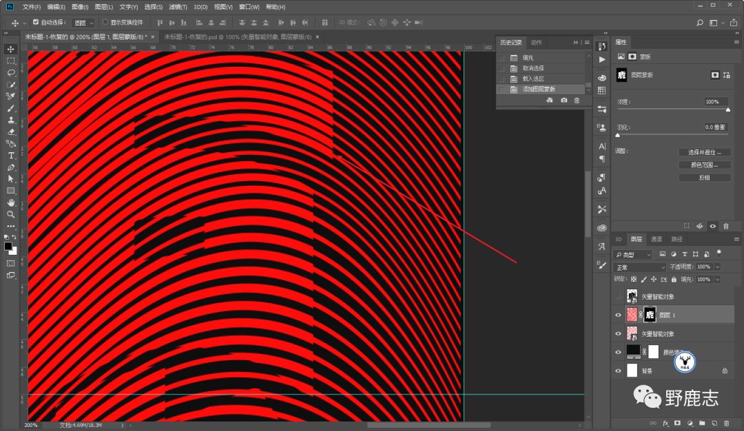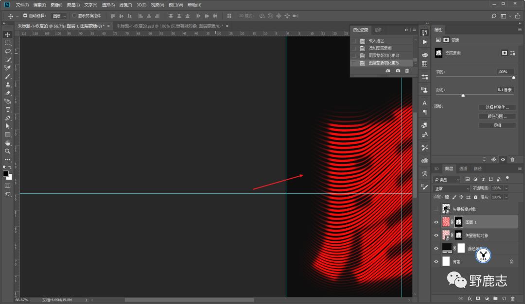 再去分别修改两个图层蒙版的羽化值,这样两边细中间粗的效果就出来了: