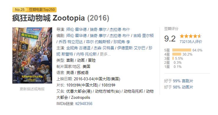 不过这回轮到吐槽台湾版了,动物方城市什么鬼?看完我真的方了。