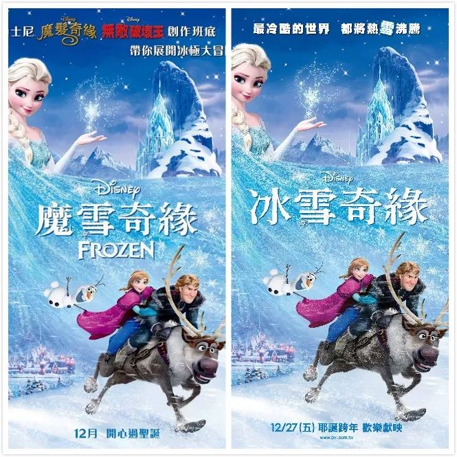 香港、台湾看起来差不多,除了香港把“冰”改成“魔”外,边缘化也没有韩国弄得好,感觉不是“抖”,是“裂”,哈哈!