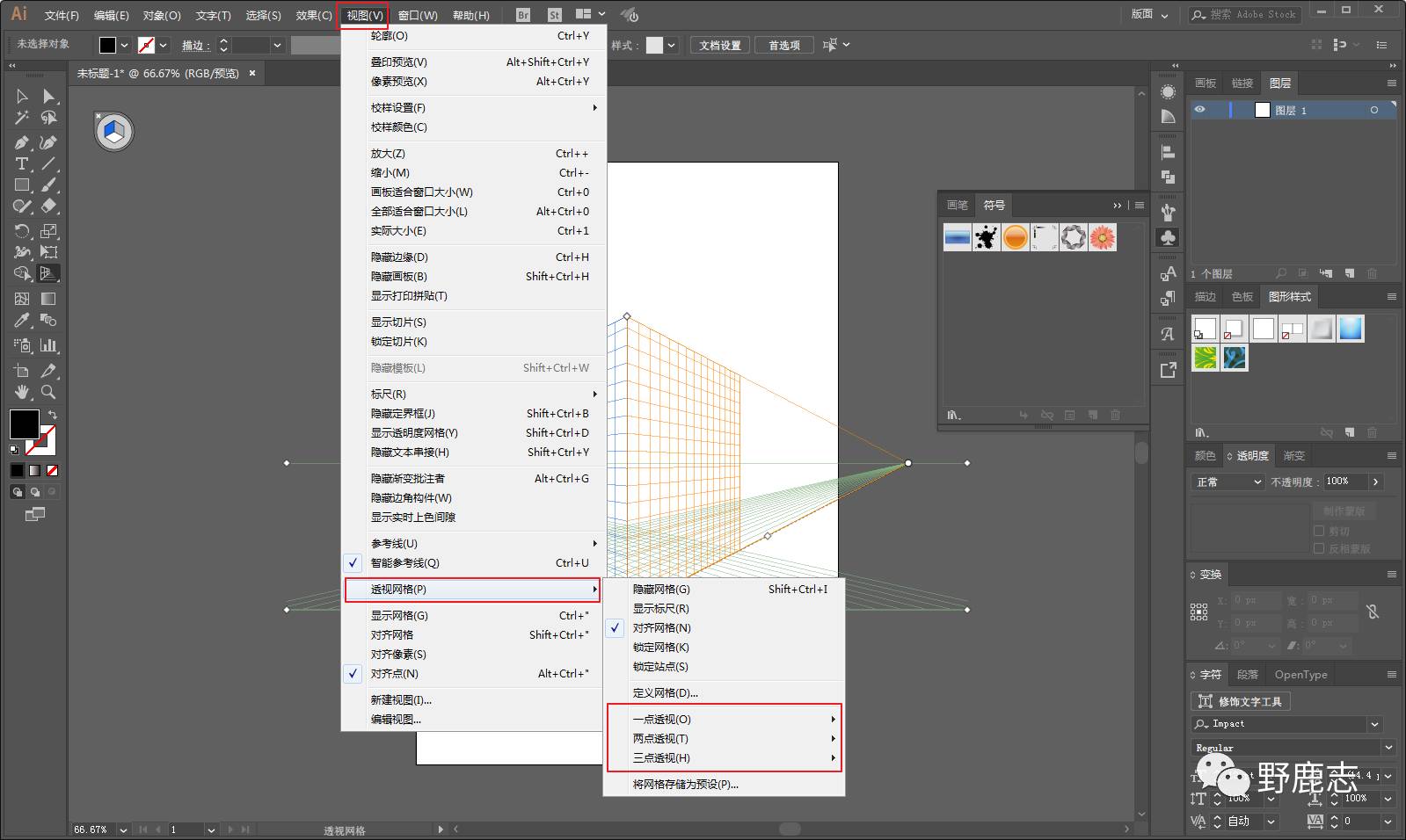除此之外,视图-透视网格中还有一点和三点透视,大家可以根据自己的需求选择: