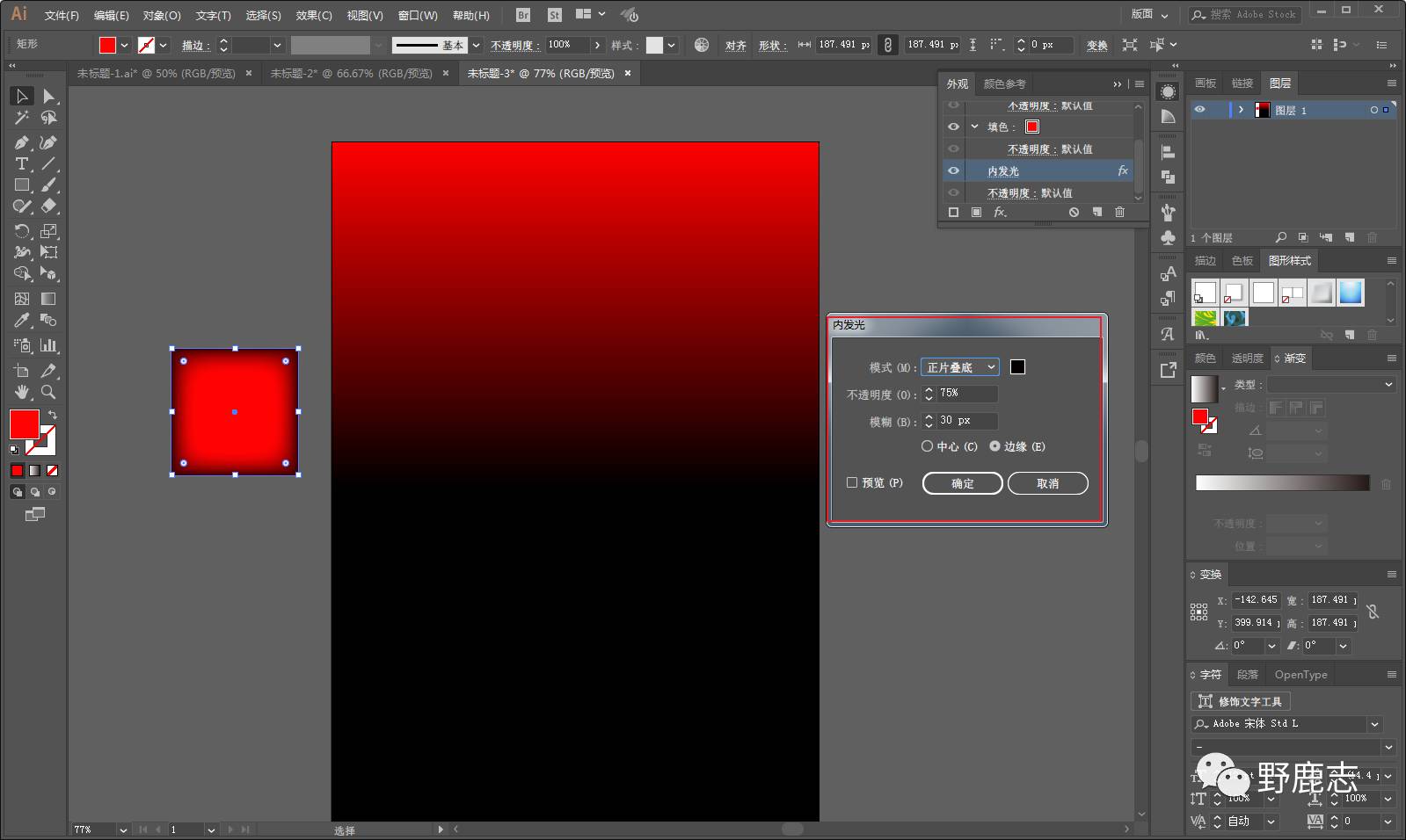 道路的镜头出画一个矩形,添加效果-风格化,内发光和投影,当做门: