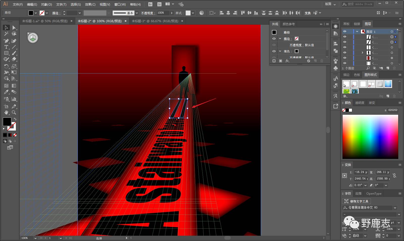 因为大家都知道其实野郎空间立体感一直都不太好,但是不好不代表要放弃治疗,所以今天我们就尝试用Ai透视网格工具做一幅海报吧。