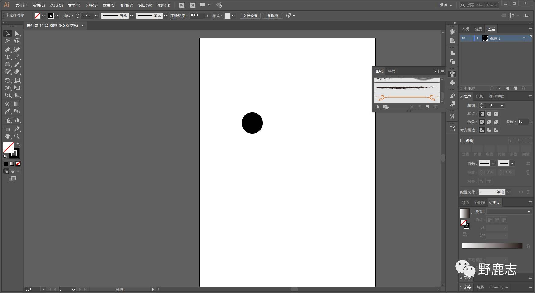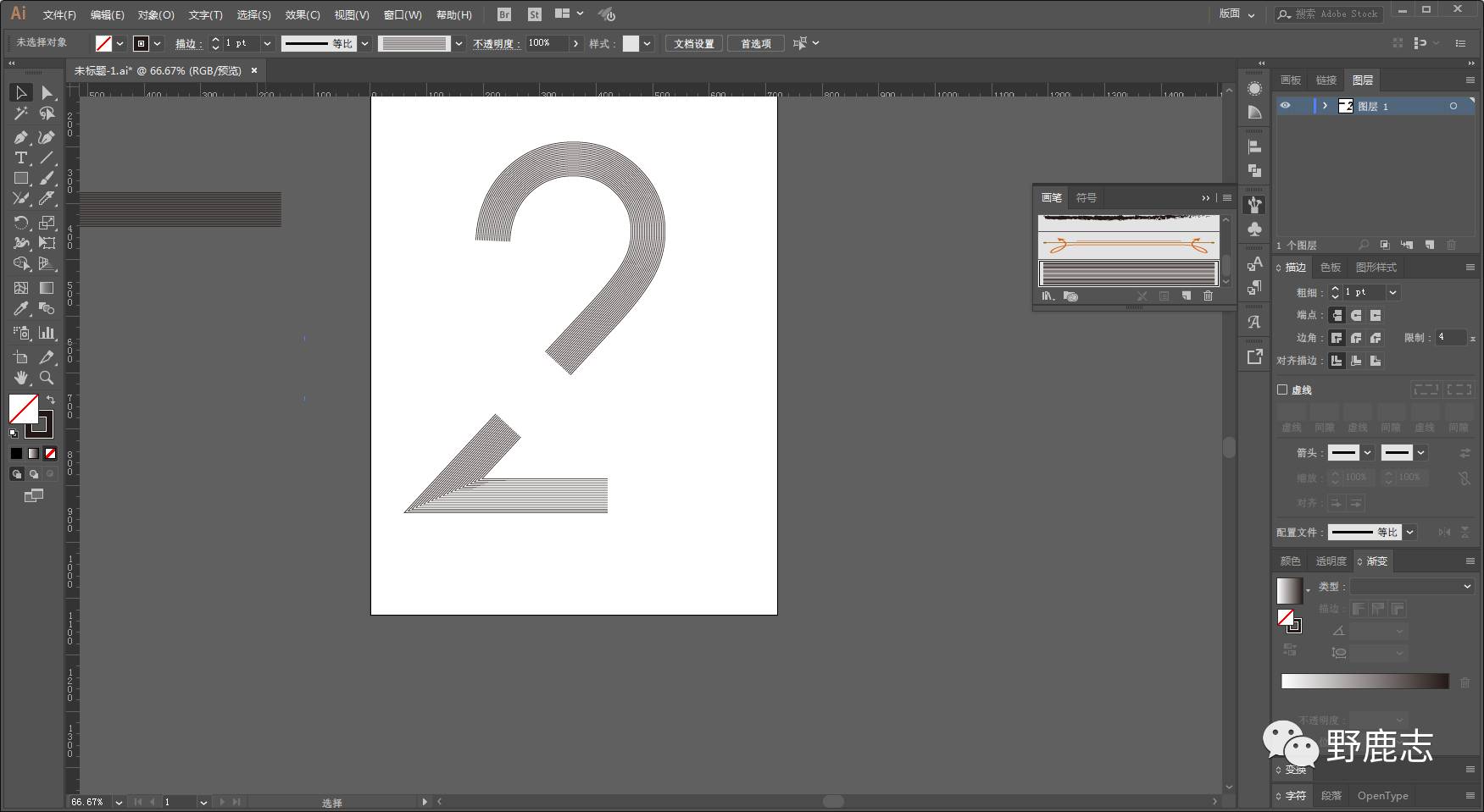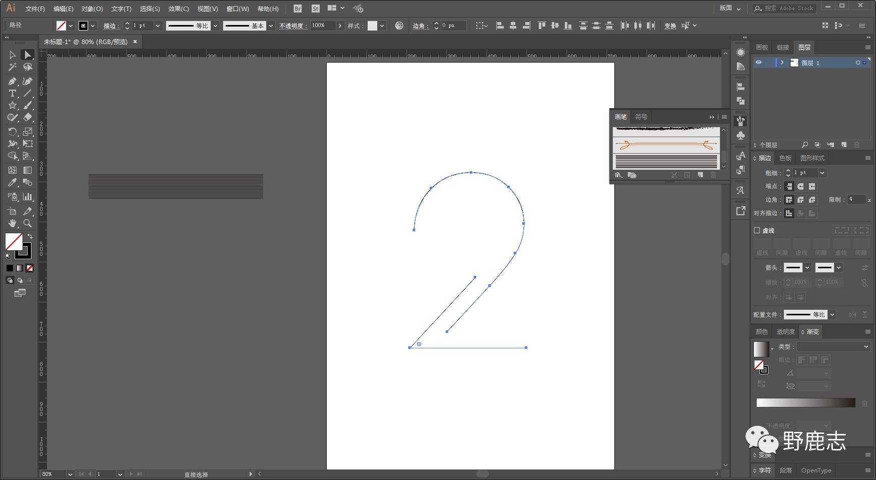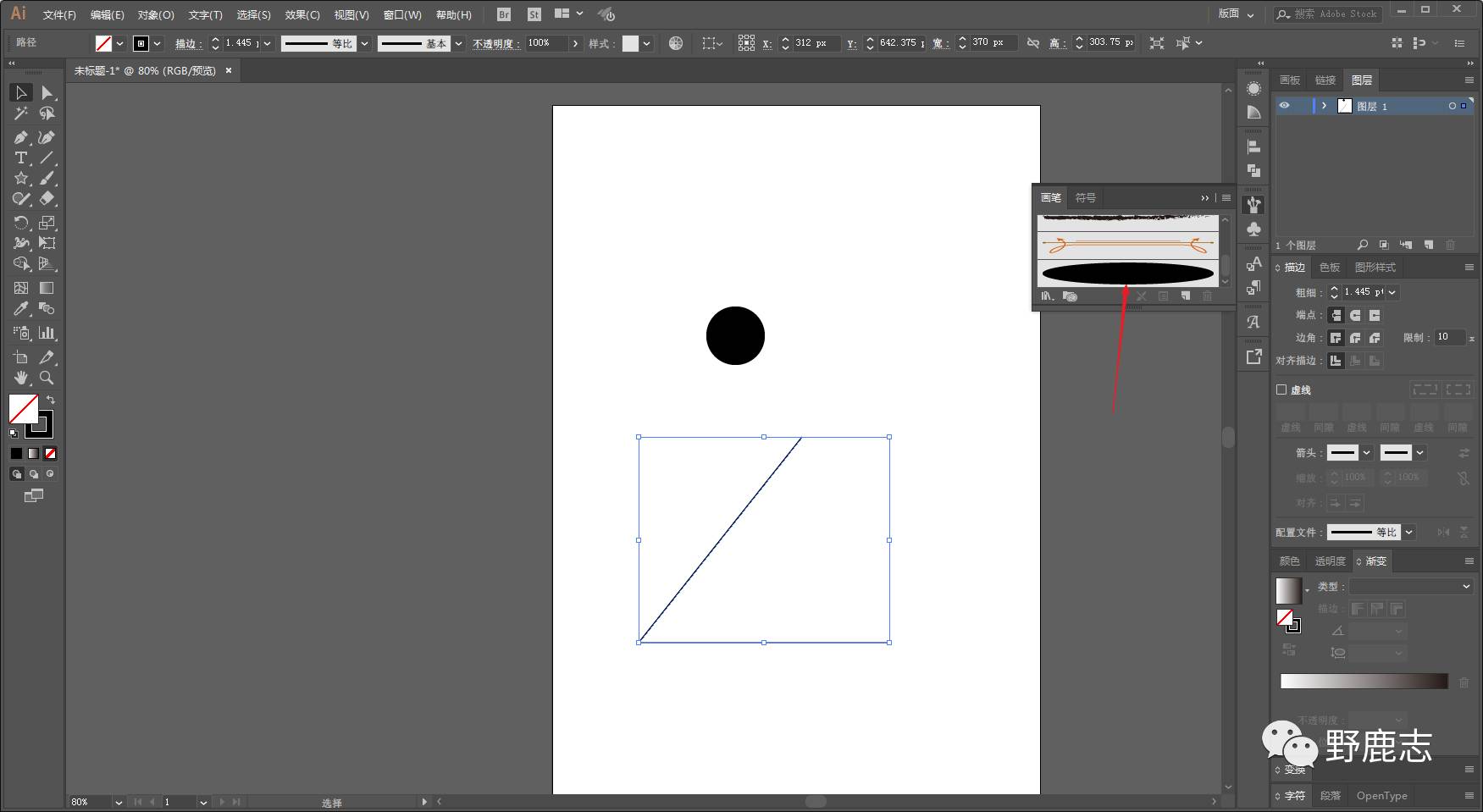 大概知道了艺术笔刷怎么用之后,我们就开始今天的正题吧,如图用直线工具画一条直线,颜色随意,描边1pt: