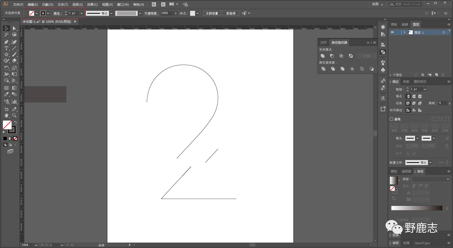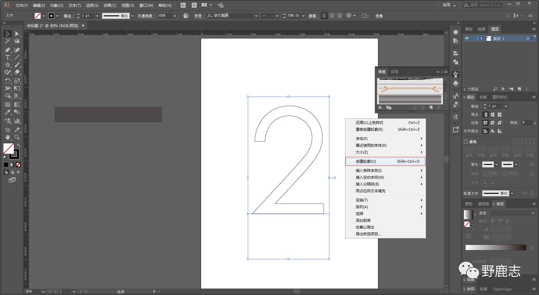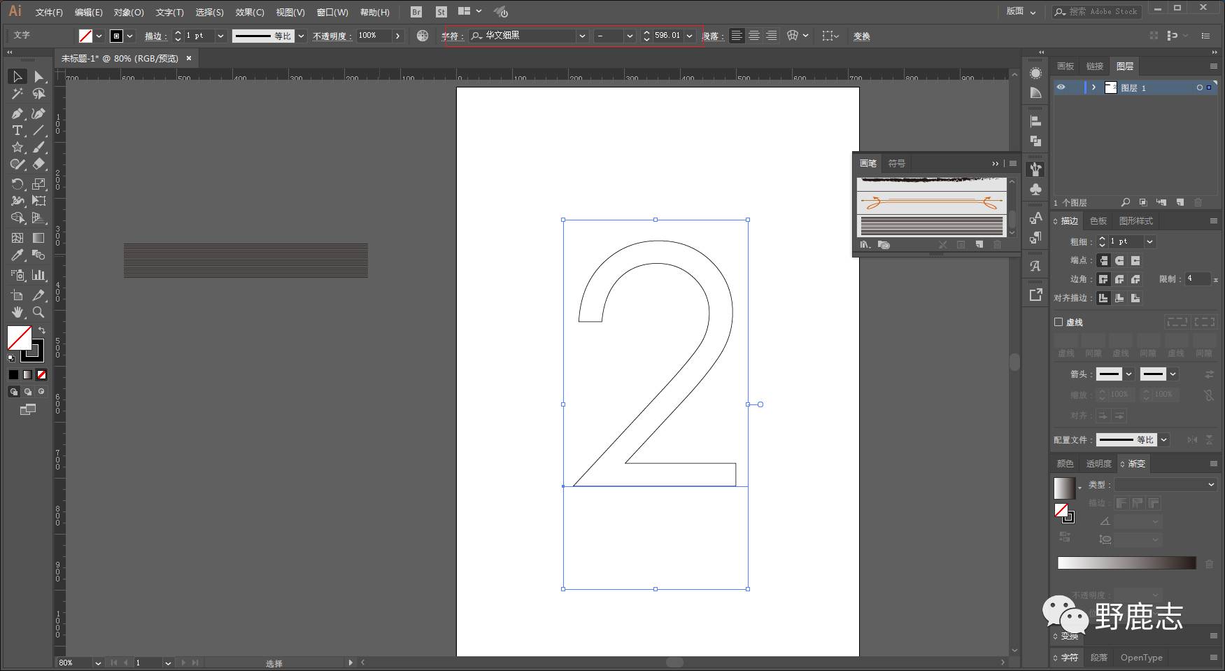 选一个合适的字体打上数字2,我这里选择的是华文细黑,描边无填充: