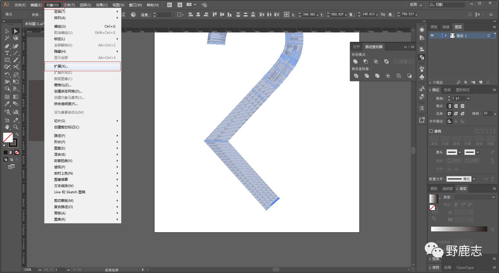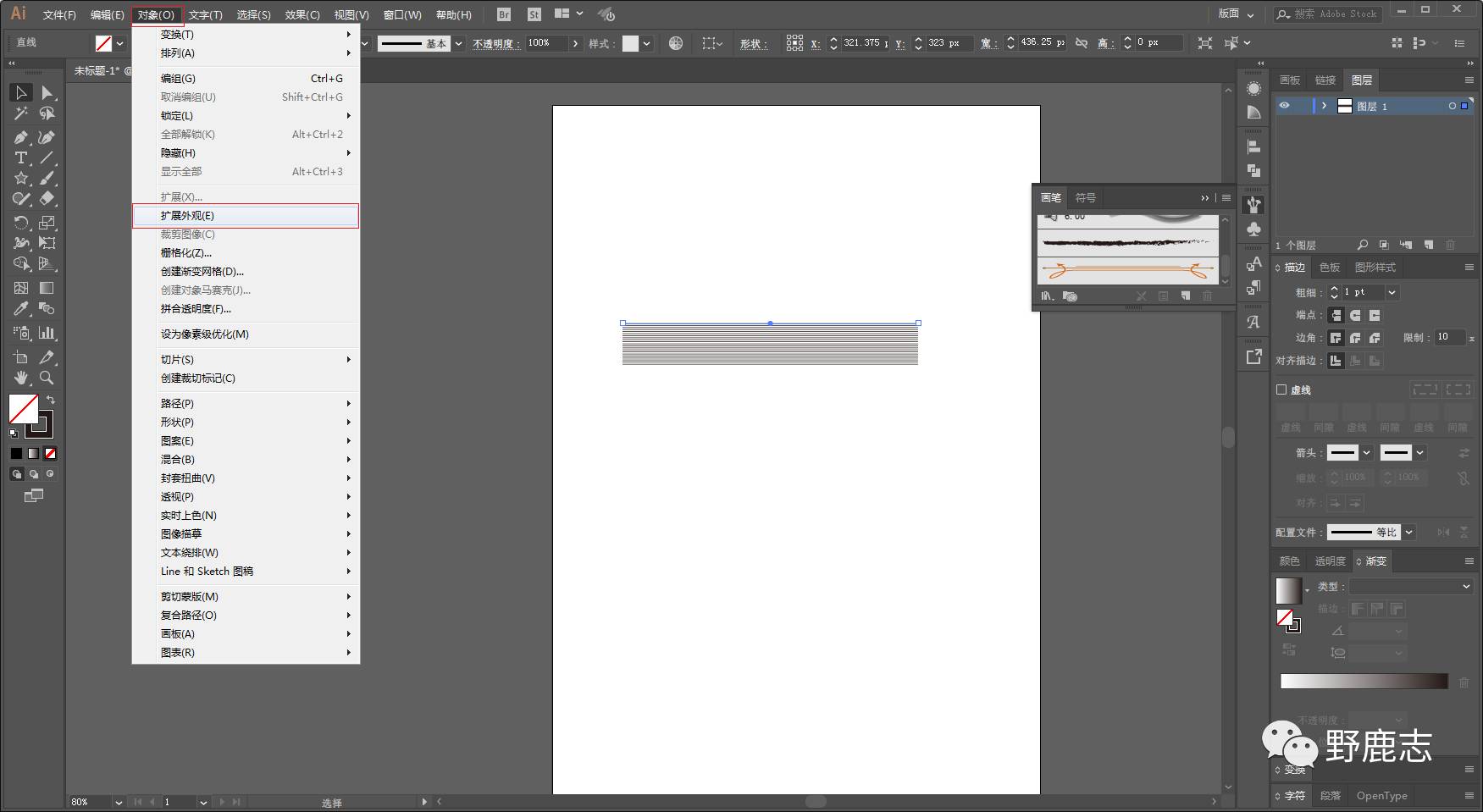 选中对象,执行对象-扩展外观,这样一组线条的图形就制作好了: