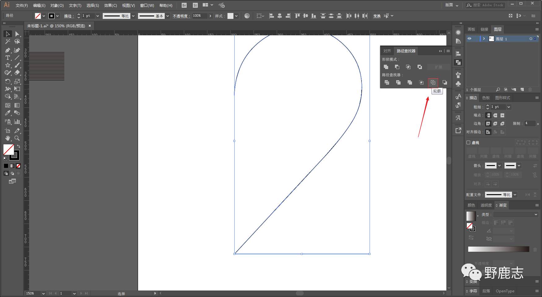 将两个部分拼合在一起之后,选中两个对象然后点击路径查找器中的轮廓: