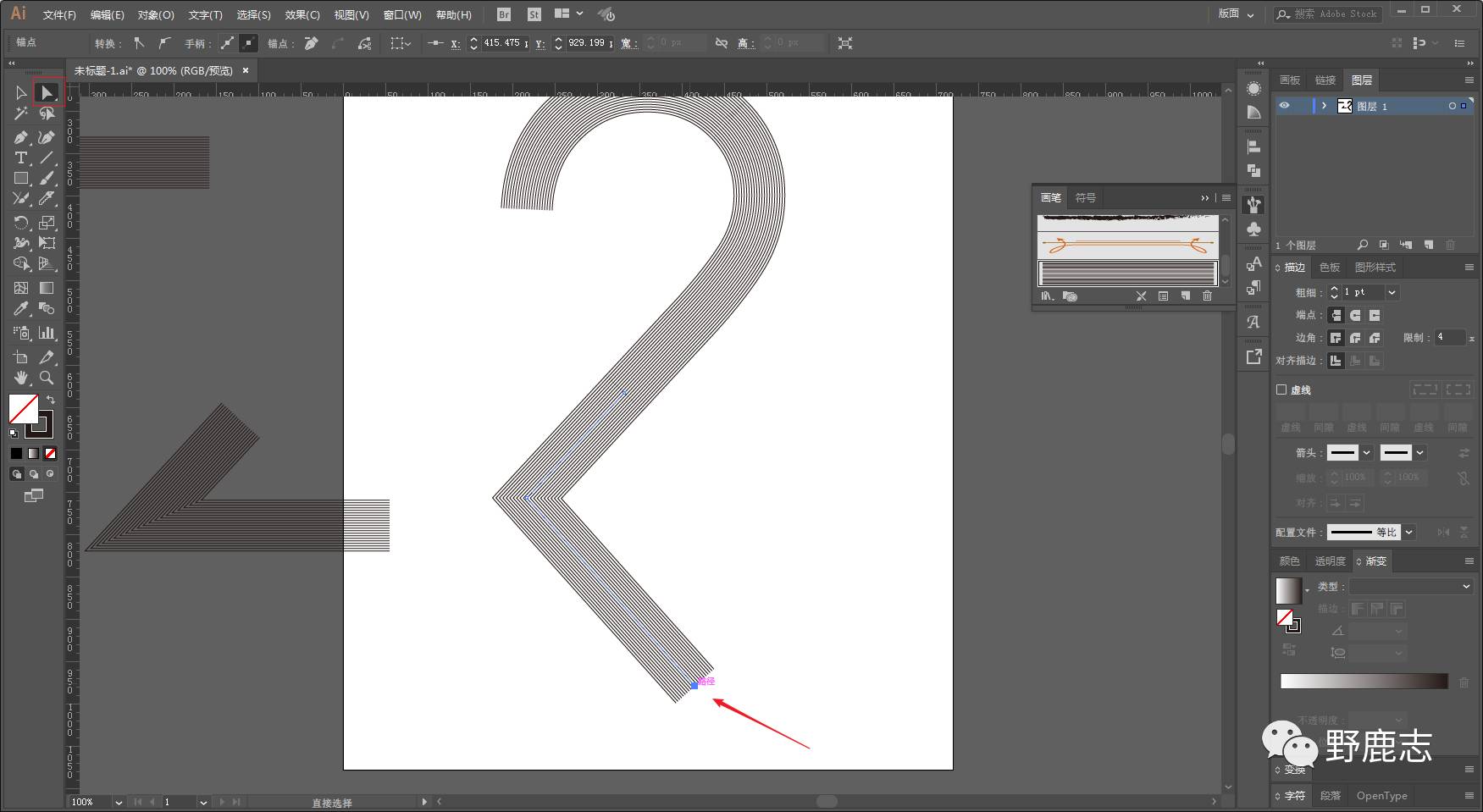这里需要对字形进行调整,所以用小白工具选中不需要的部分后删除,别忘记取消编组以及释放复合路径噢: