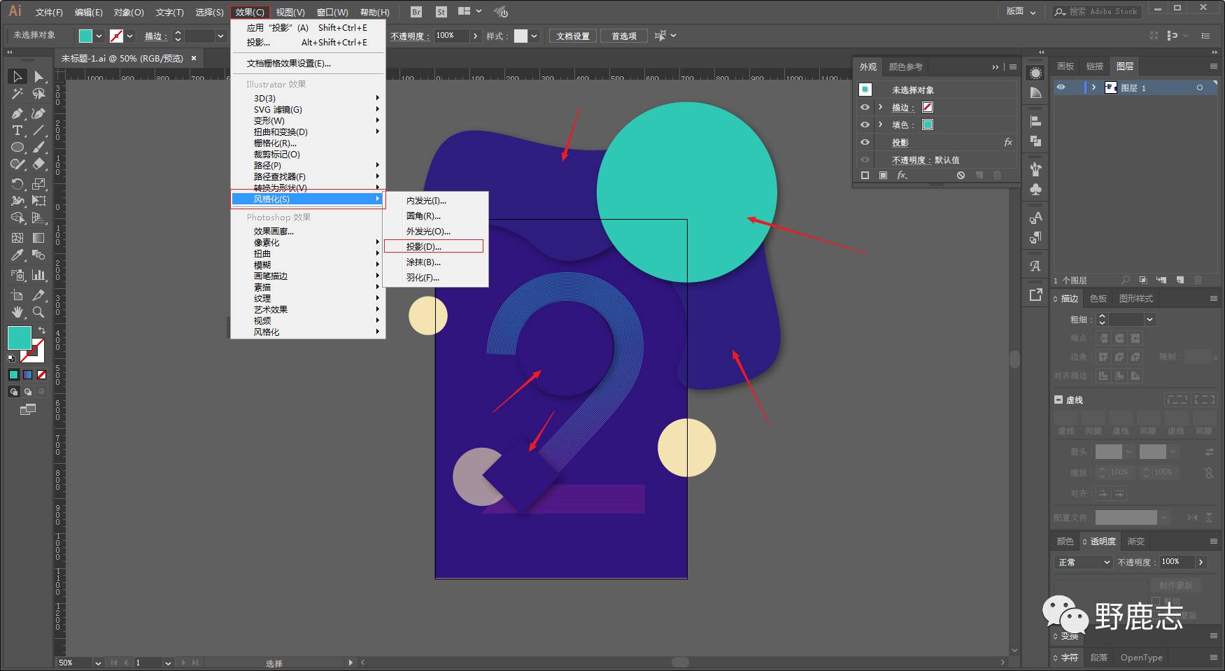 给箭头所指出的对象添加效果-风格化-投影,参数大家看着办就好: