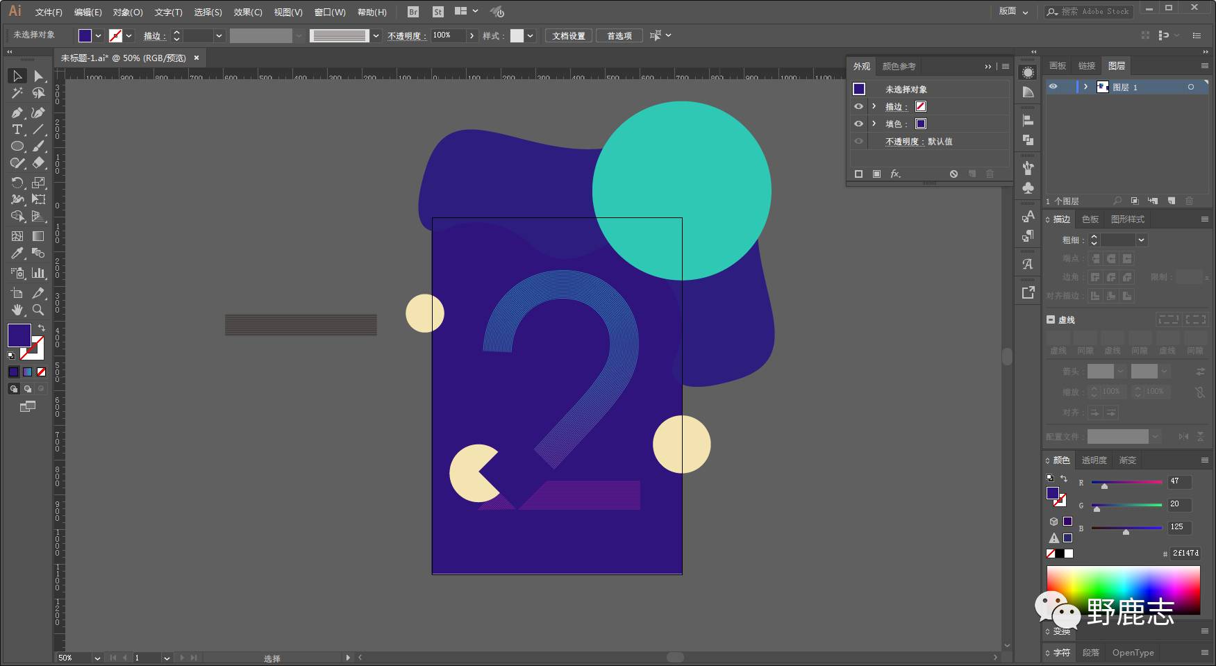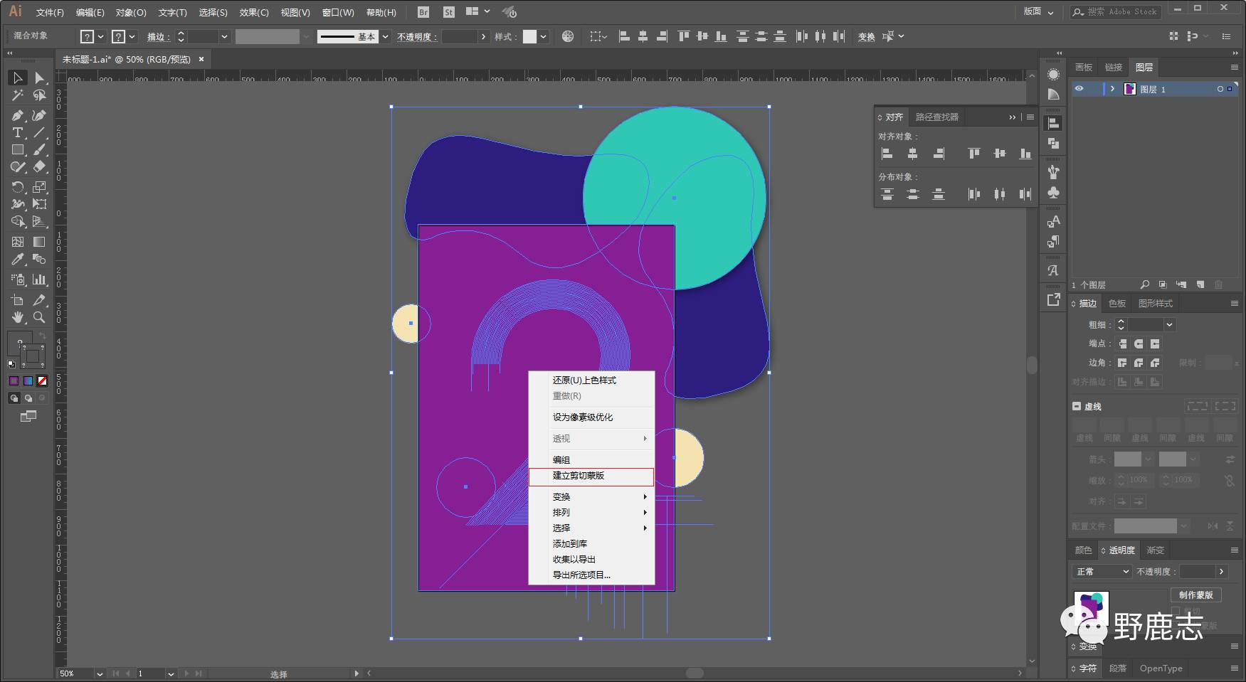 基本上就搞定了,接下来最上面画一个和画板一样大小的矩形,全选对象右键创建剪切蒙版搞掉画板以外的部分:
