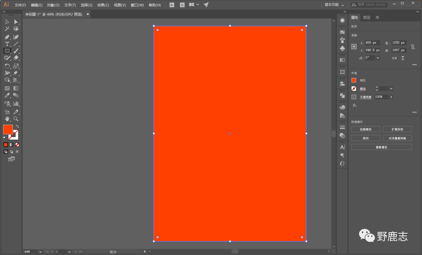 为了方便观察,先给个背景色吧,在画板上画一个矩形,并且ctrl+2锁定: