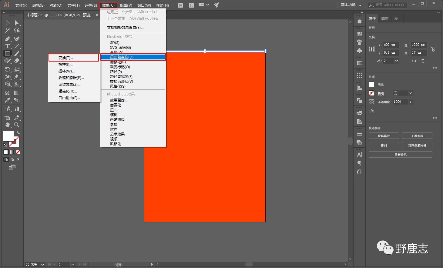 矩形工具画一个长条,执行效果-扭曲和变换-变换: