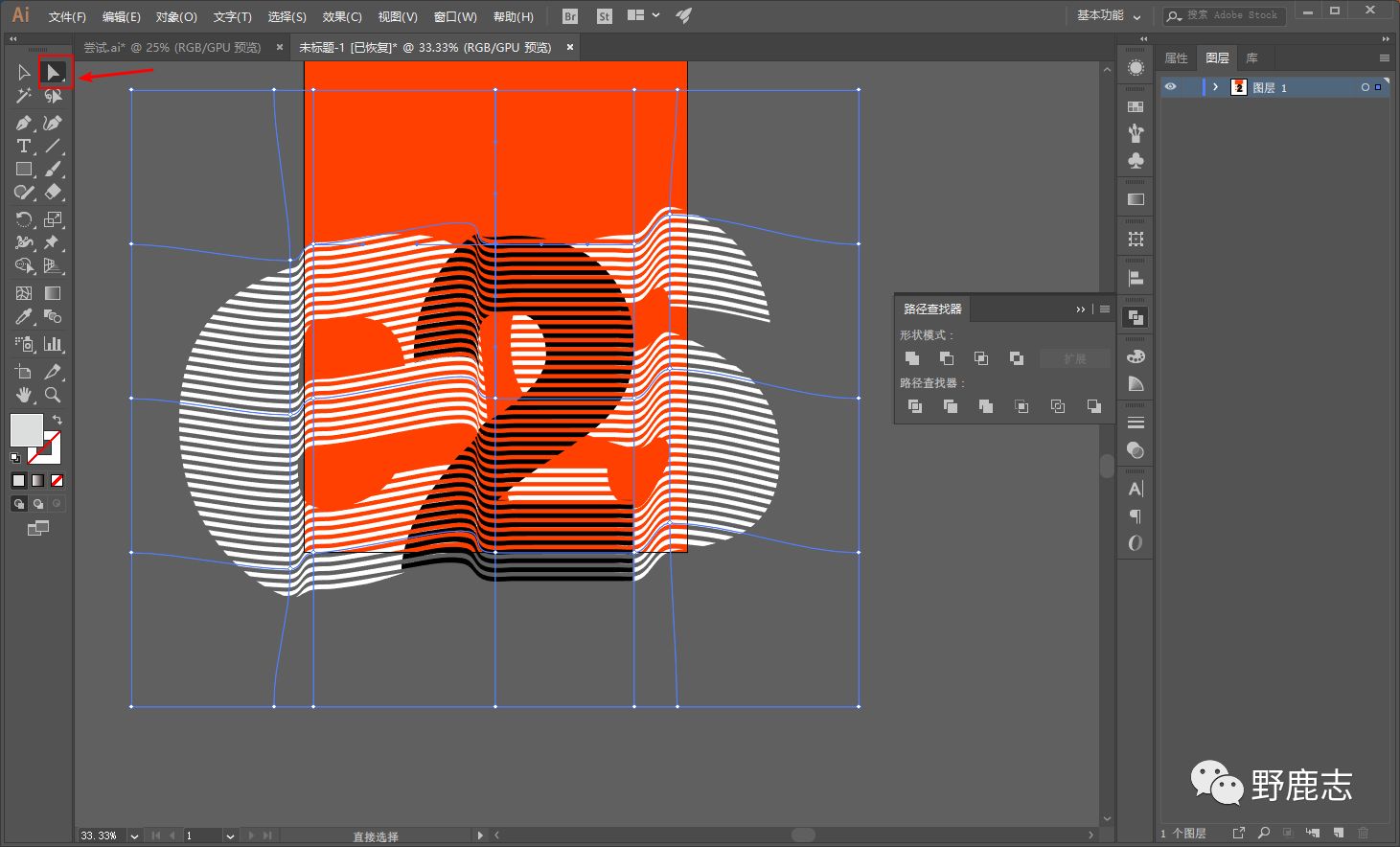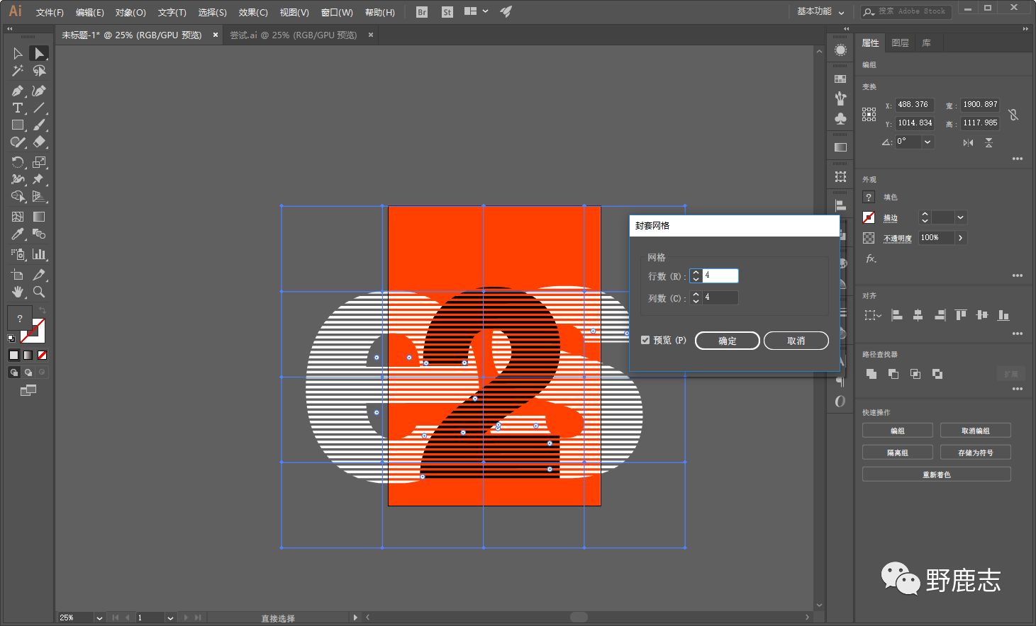 这种效果其实用Ai封套扭曲来制作并不是很难,和我野郎前面分享的丝带数字一样,主要是考究锚点以及手柄的调整: