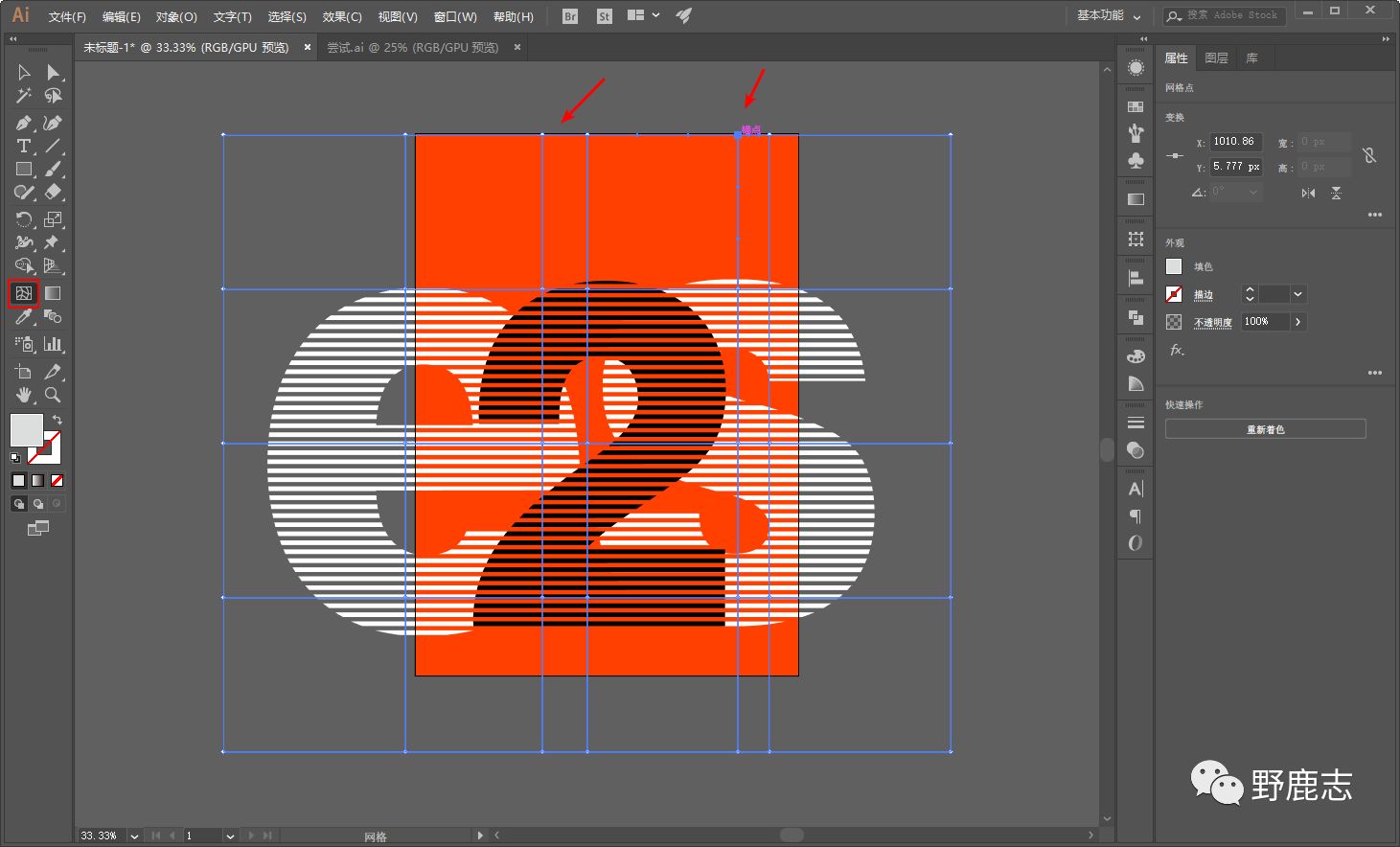 因为我觉得从网格建立的等分线不太好调整,所以用网格工具另外加了两根线: