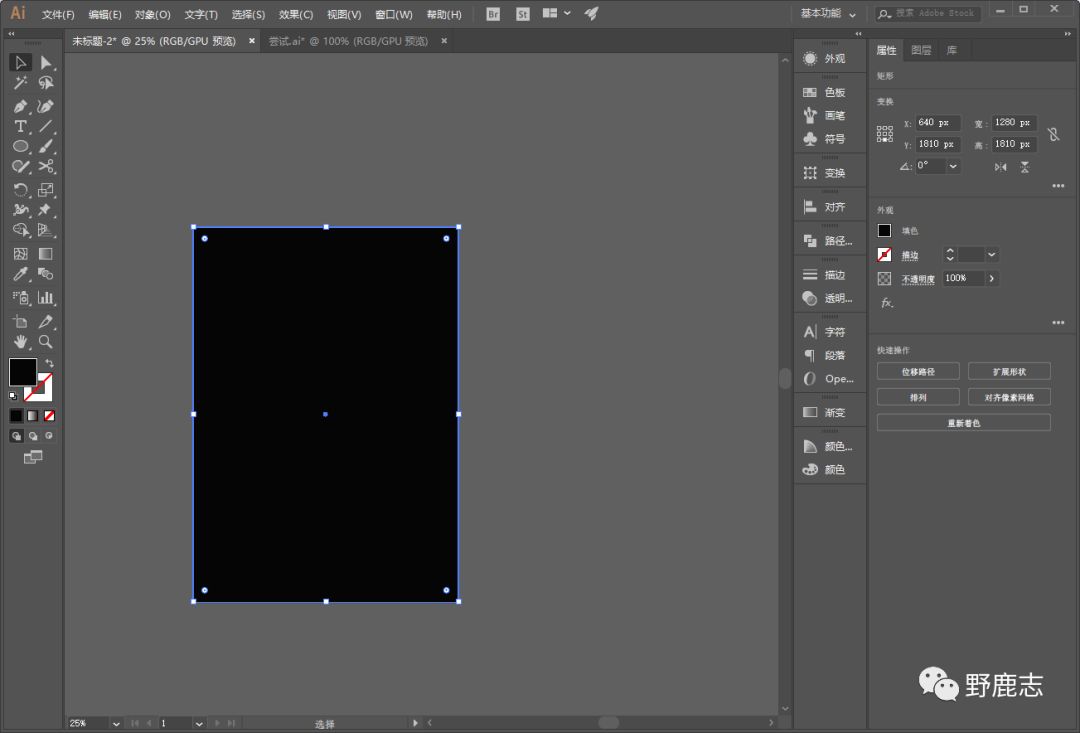 为了方便观察,我们先在画板上画一个黑色矩形并且ctrl+2锁定充当背景: