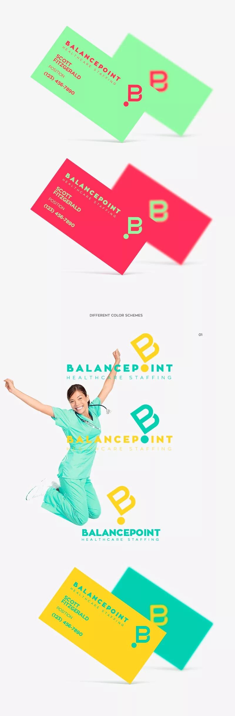 他还为医疗公司设计过名片,完全打破了冷冰冰的感觉,红绿搭配也是高难度了。