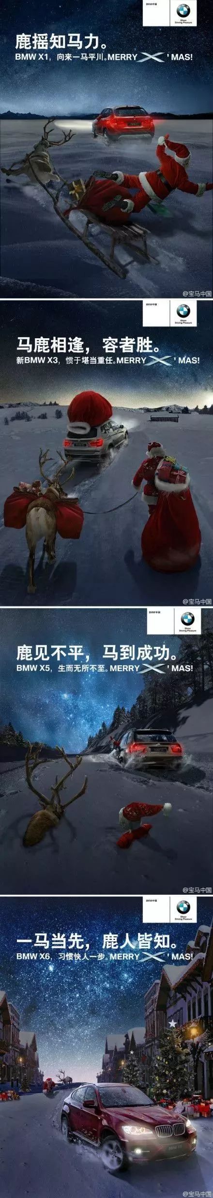 除了圣诞树,给圣诞老人拉雪橇的驯鹿,也被盯上了,各种谐音文案,也是扑面而来~