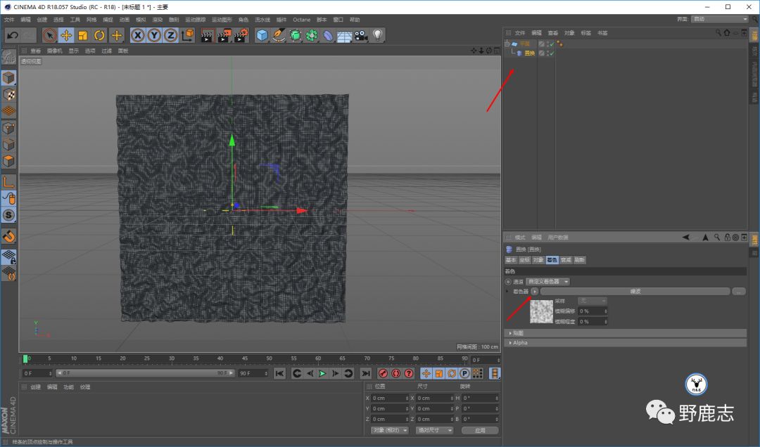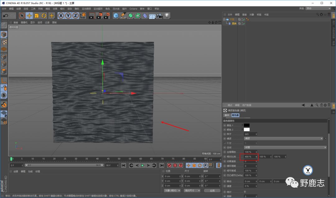 给平面添加一个置换变形器,变形器中添加噪波:
