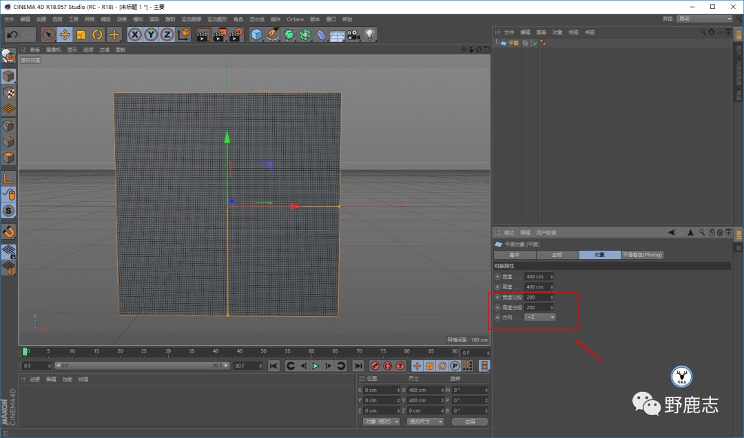 我这里说说自己胡乱做的一个模型的方法吧,先新建一个平面,方向为Z轴,增加宽高的分段数: