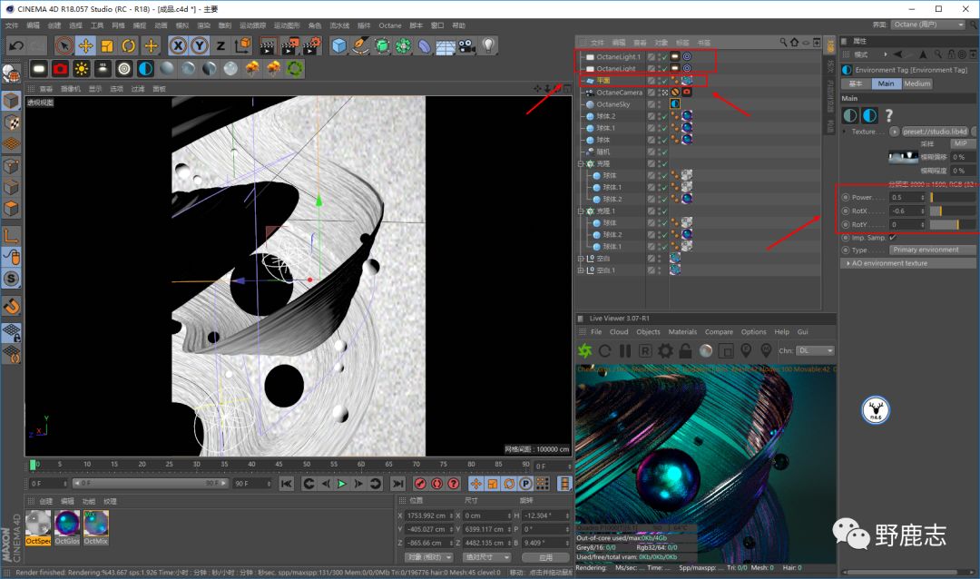把其他的球都给上材质,调整环境光的位置以及强弱,在适当的地方补一下光,这一步大家看着来吧,我打灯很水的: