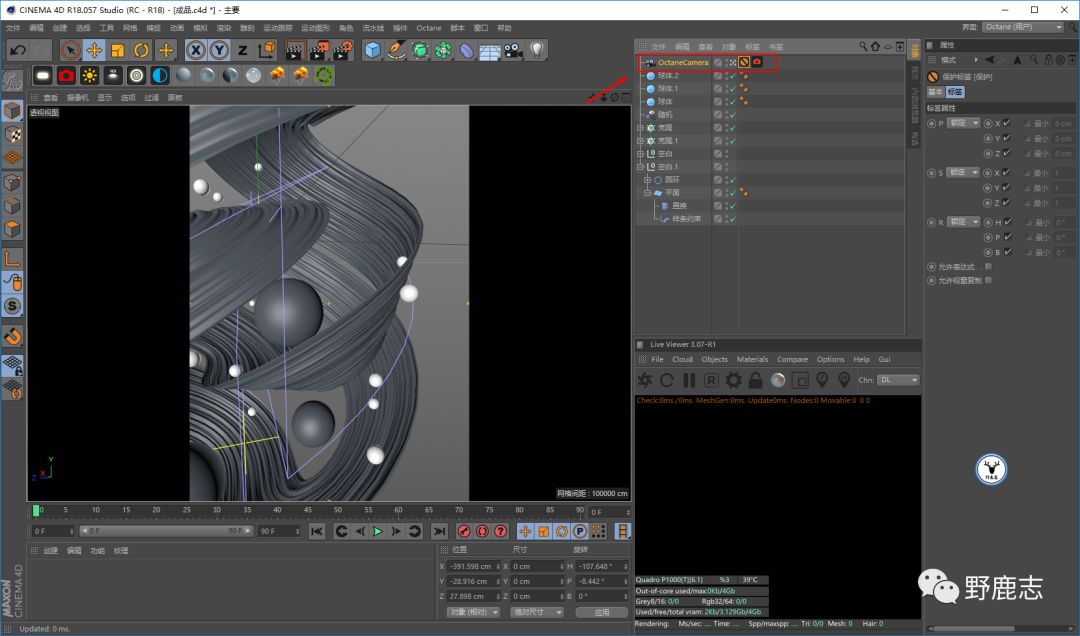 打开OC,先新建摄像机把视角固定上: