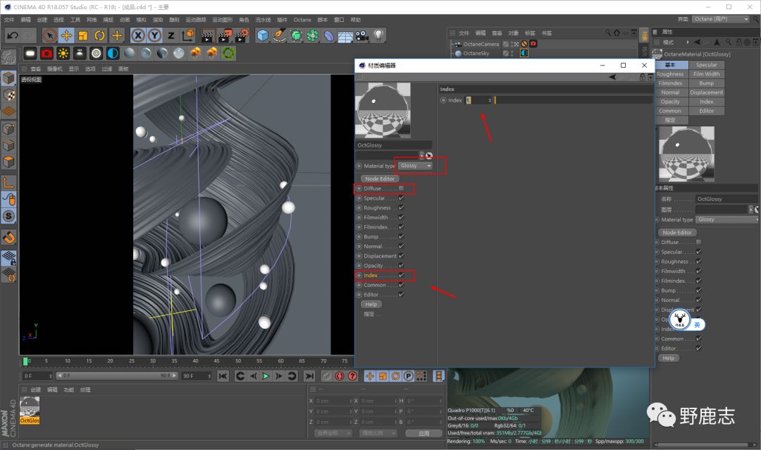 新建反射材质球,把颜色通道的勾去掉,折射率选择1或者8都行,8的话会比较暗一点: