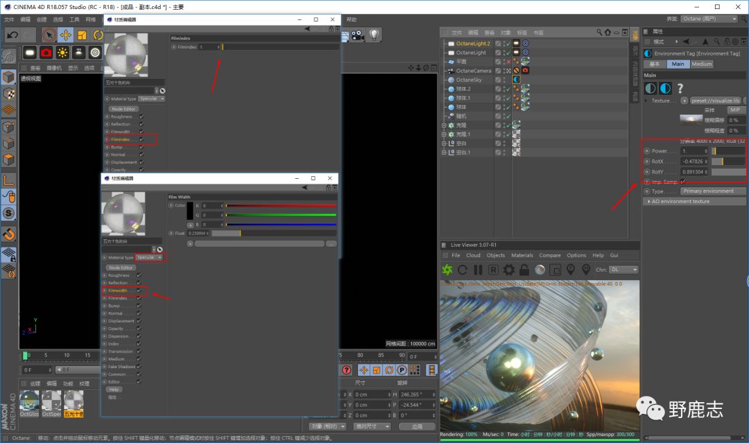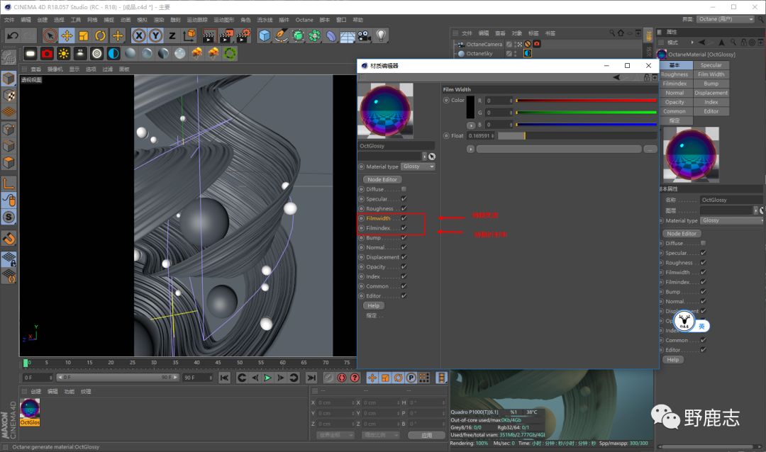 至于五光十色的白材质方面还要简单一点,直接使用透明材质调整薄膜宽度以及折射率就行了。
