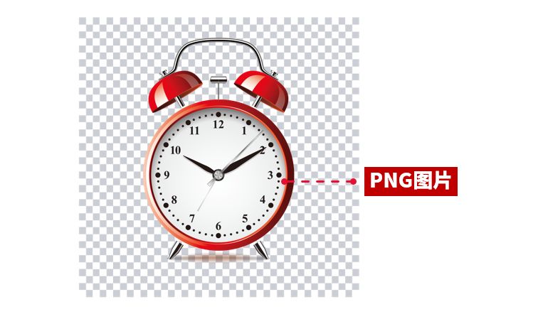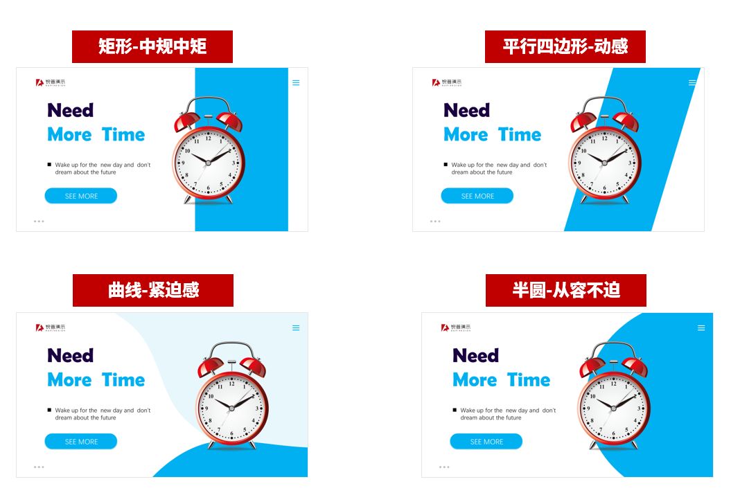 找到一张闹钟png,在下方插入矩形、平行四边形、圆形等,每种搭配所表达的感觉是不一样的。