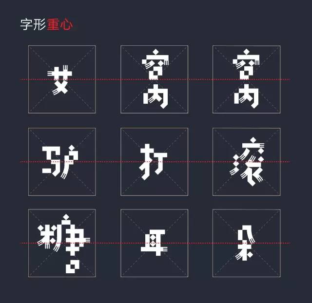重心平稳,反传统,字距变宽,不拘一格。