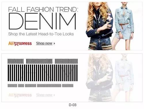 图(D-03),词间距为节奏,字号大小进行强烈对比突出DENIM,又因为采用的细线字体,使整个画面的韵律时尚又圆润,符合女装的主题。