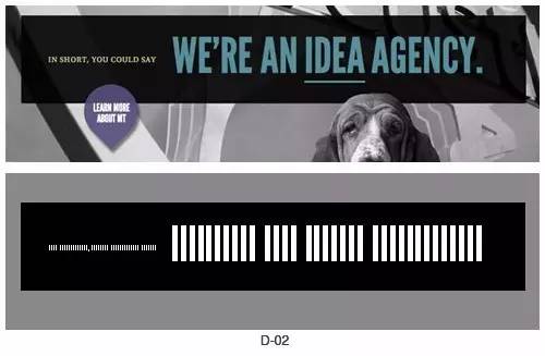 图(D-02),文字采用大写,以单词的间距为节奏,字号大小进行对比形成韵律的强弱,文字排版理性而有秩序,由细微的韵律引导,突然变化成强烈的声调,主题震撼,醒目突出。