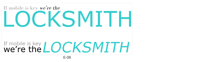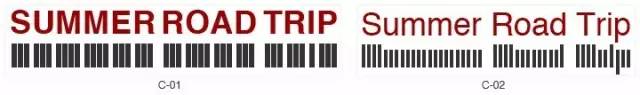 如下图,字体字号方向均相同,节点音符不断的重复出现,节奏就是单词之间字母之间的间距,而大小写的区分,则产生了高低起伏的韵律,字体的粗细使文字发散出欢快还是稳重的气息,如图(C-01)全部大写是平缓稳重的韵律,如图(C-02)采用大小写,则产生了高低起伏的韵律,而因为节点比之左边文字节点要细,所以会显得活泼一些。