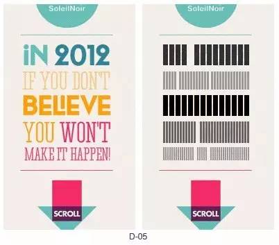 图(D-07),左边的字体排版主要以基线的变化为主韵律,由单基线变双基线,单曲变重奏。大小写的高低起伏变化,让文字突出了重点表达了主要内容,节奏又变的明快。