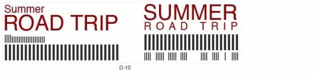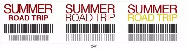 如图(D-01)字体相同,不同字号,不同粗细,不同颜色,形成效果不同的韵律。节点的粗细间距都可以给人不同的韵律感,欢快的、稳重的、活泼可爱的还是紧张舒缓的,更由于韵律的不同而有更明显的对比。