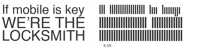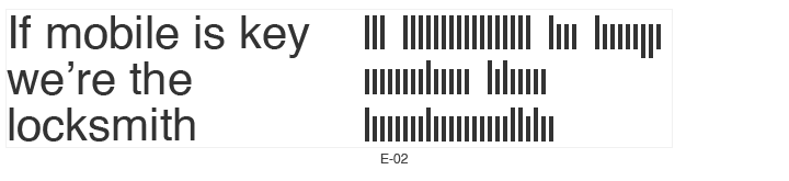 图(E-01),一行没有变化的字,虽然有秩序,但是太长没有重点没有主次,只能依靠字体本身所具备的特性产生节奏,韵律平淡不出彩。