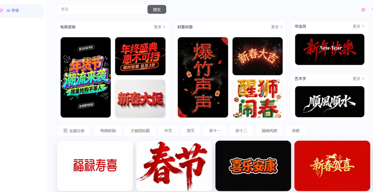 我们都知道字由是一款非常好用的字体下载和管理工具,同时字由也有非常好用字体 AI 功能,比如最近上线的【AI 工具】功能,提供非常丰富的字体模板,只需要替换文字,就可以生成同样效果的字体素材。