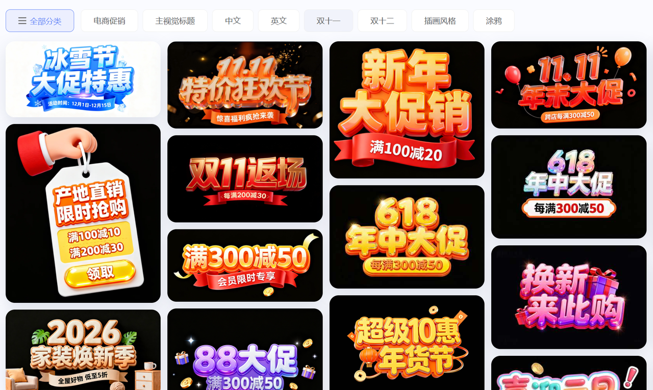 比如我们需要一个年底促销的字体素材,我们可以按照下面的步骤进行生成