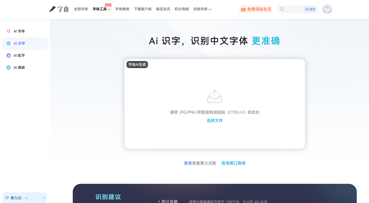 - 第一步,打开字由客户端或官网,进入「AI 识字」功能页面。