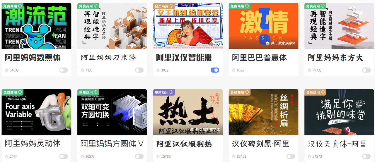 作为阿里字体的官方源头平台,这里是获取阿里巴巴普惠体、阿里妈妈灵动体等官方字体的首选渠道。所有字体均免费商用,授权信息直接由阿里官方背书,完全无需担心侵权问题。尤其是阿里巴巴普惠体3.0版本,适配新国标且覆盖海量生僻字,不管是正式文档排版还是商业物料设计都能hold住;阿里妈妈方圆体作为双轴可变字体,可在方体与圆体间自由切换,粗细也能精准微调,创意设计场景下实用性拉满。