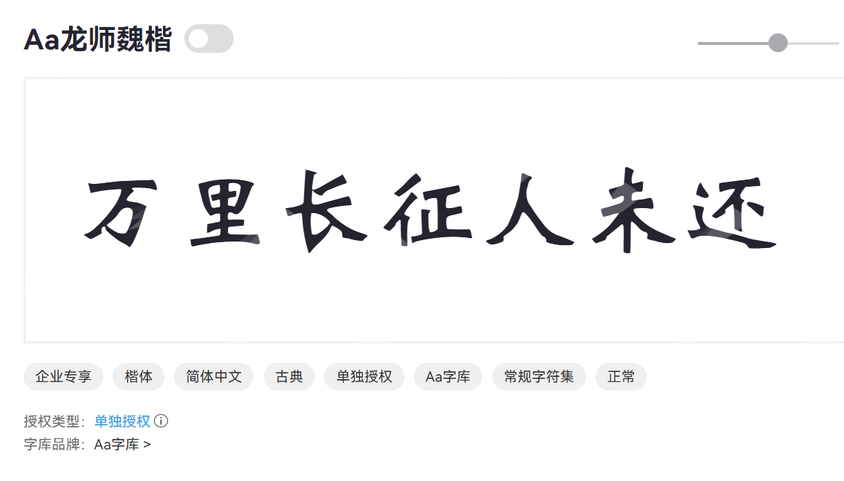 Aa龙师魏楷笔画既有魏碑的硬朗,又有楷体的柔和,字形匀称,适合长篇文本。