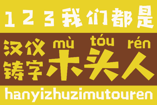 汉仪铸字木头人是汉仪字库推出的一款极具个性和创意的手写风格字体。它的设计灵感可能来源于木偶或木头玩具的结构特征,笔画僵直却不失童趣,整体风格独特而富有张力,是一款艺术感和设计感兼具的字体。