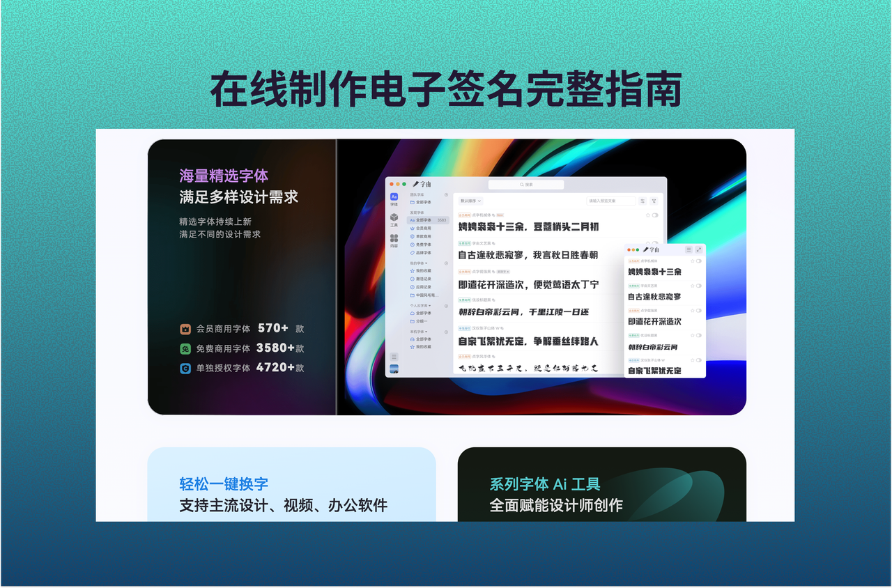 我的体验感受是,很多人把在线制作电子签名当成“写个名字”就结束了,但落到设计稿里,签名周围的标题字、日期字、说明字一旦风格不搭,整张图就很廉价。字由解决的正是后半段:你把签名图做出来以后,旁边的姓名、职位、落款、封面标题,可以直接在设计软件里一键换字,省掉找字、装字、对授权的焦虑。