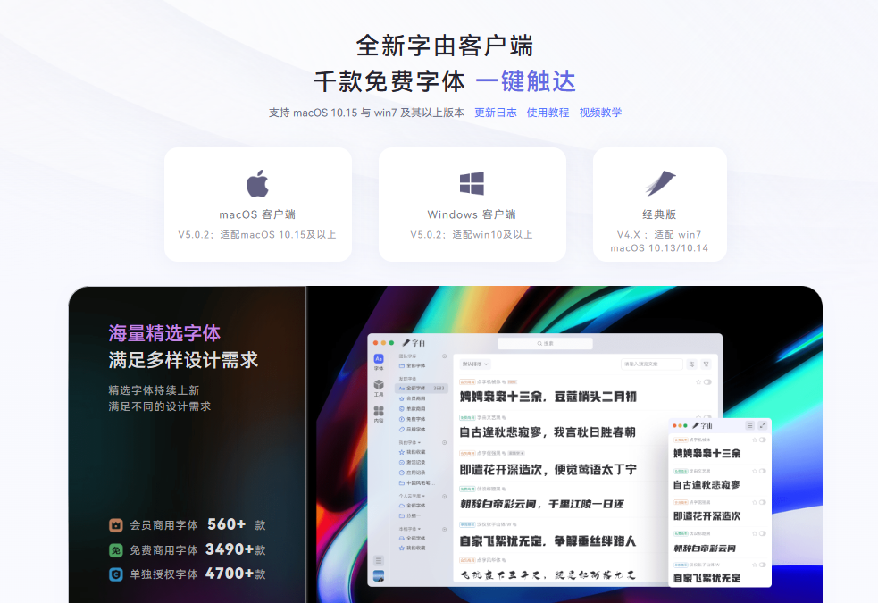 做为一款为设计师量身打造的字体下载网站,字由自开站以来,已经积累了上千万名用户,为超百万名专业设计师提供了专业且简单便捷的字体服务。