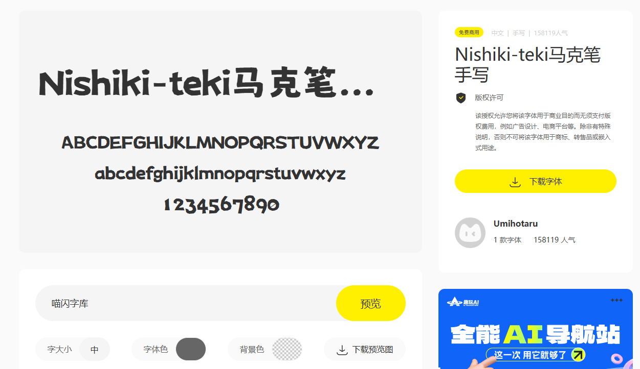 喵闪字库同样是一个能提供中文字体下载服务的网站,它站内汇集了千款中文字体,访问喵闪字库后就可以在网站首页清晰地看到。比较快捷方便的一点是,即便是在未登录的状态下,也可以在喵闪字库内下载字体素材。