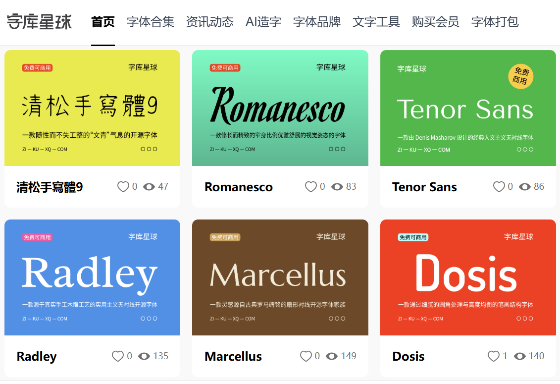 2、字库星球:专注字体免费下载体验,提供中文字体包下载