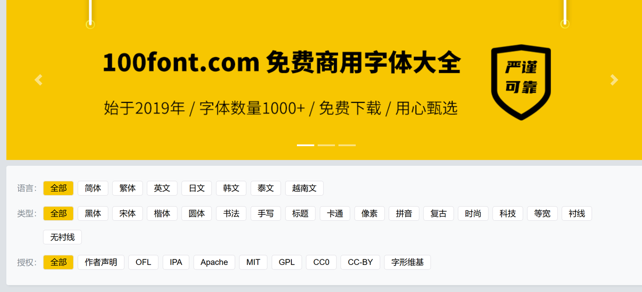 四、100font:免费商用字体库,隶书字体实用又省心